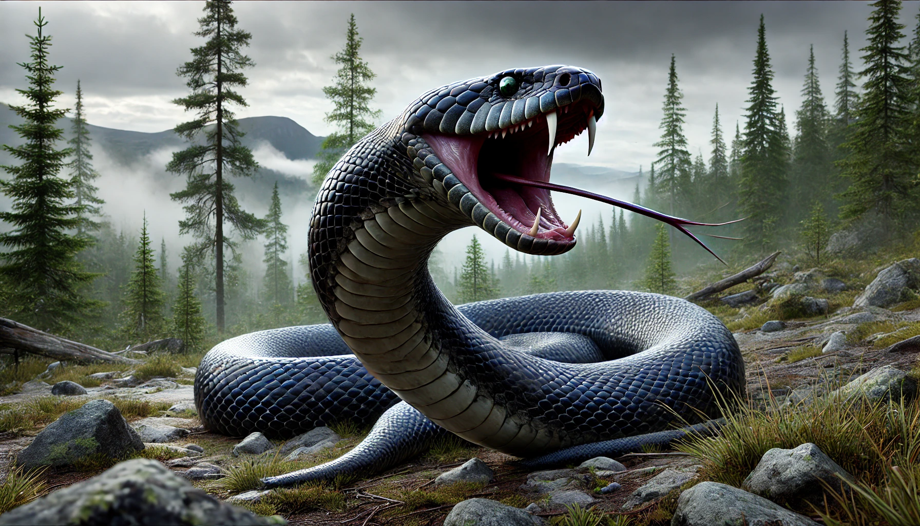 Mit einer Länge von bis zu 13 Metern, giftgrün schimmernden Augen und prähistorisch anmutenden Säbelzähnen erscheint die H. norvegica wie eine Mischung aus Mythos und Mutation. Die realistische Schuppenstruktur weist eine leichte Symmetrie auf, die an Runen oder alte Symbole erinnert, jedoch natürlich gewachsen wirkt.